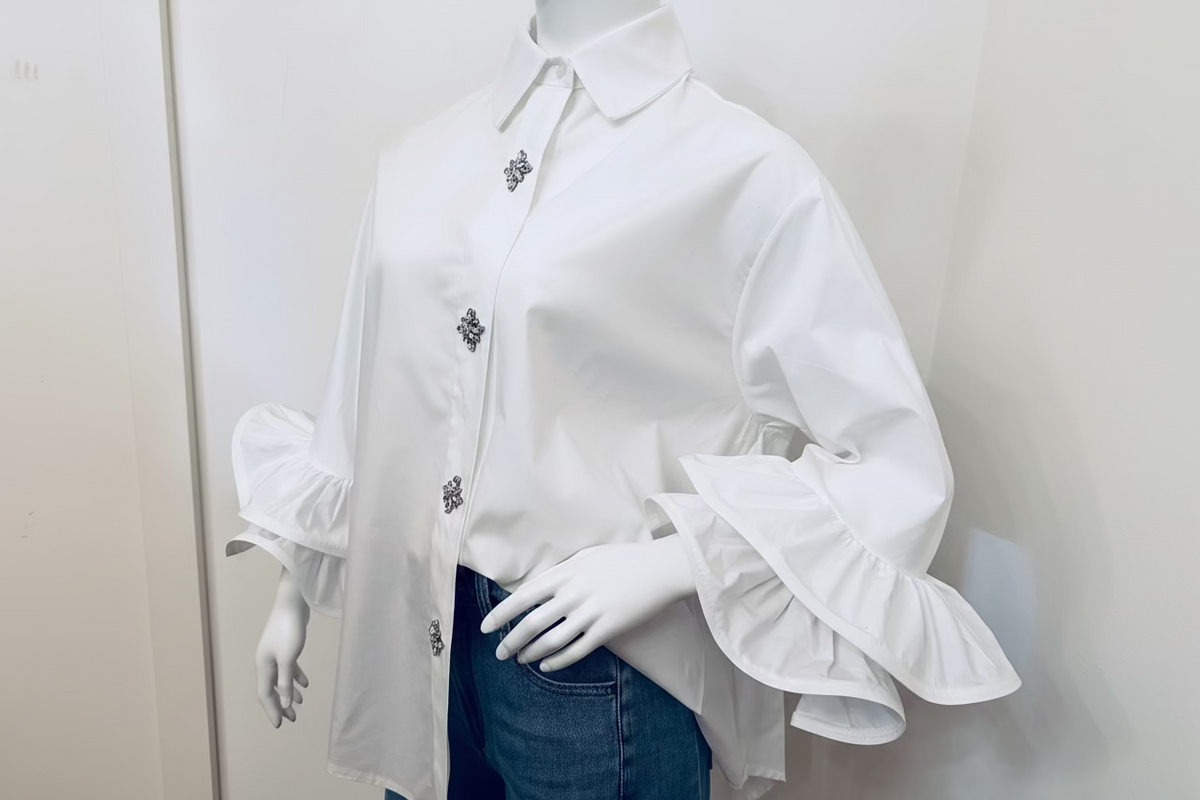 Bluse Céline – White & Sky Blue